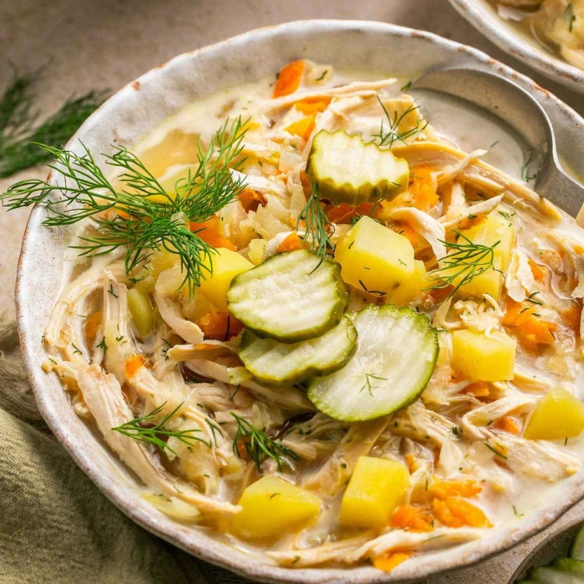What makes this version stand out is that it’s not just a pickle soup; it’s a carefully orchestrated balance of umami, acidity, and creaminess. The key secret is the use of whole pickles in brine, not just the juice, so the soup inherits the full-bodied flavor of the cucumbers, not just a tangy aftertaste. Another game‑changer is the addition of dried mushrooms, which lend an earthy depth that elevates the broth beyond ordinary. The half‑and‑half replaces heavy cream, giving the soup a silky mouthfeel while keeping it lighter and more approachable. The dill is added at the very end, preserving its bright, herbal note rather than letting it wilt into the background. The result is a soup that feels both familiar and adventurous, a dish that will have guests asking for seconds and then seconds again. Paragraph 4: 6 sentences.