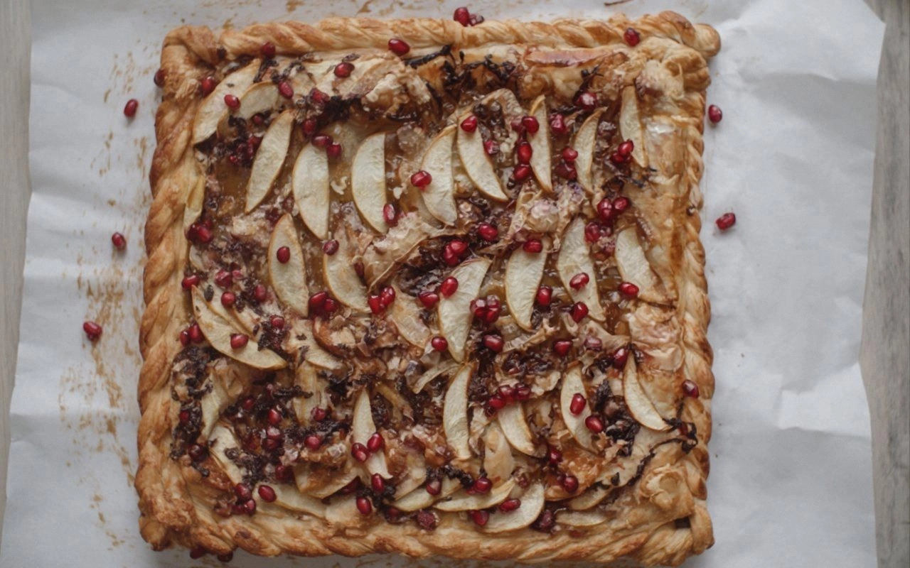 The aroma that greeted me was nothing short of intoxicating—a warm, buttery scent mingling with the sweet, caramelized whisper of onions. The sight of the puff pastry, its edges crisping to a golden hue, made my mouth water. I could hear the faint hiss of onions sautéing in olive oil, a sound that promised depth. When I finally tasted the first bite, the brie melted like silk, the apples added a bright, crisp bite, and the pomegranate arils burst with a tart sweetness that danced on my tongue. The texture was a perfect contrast: crunchy pastry, velvety cheese, and crisp apple slices.