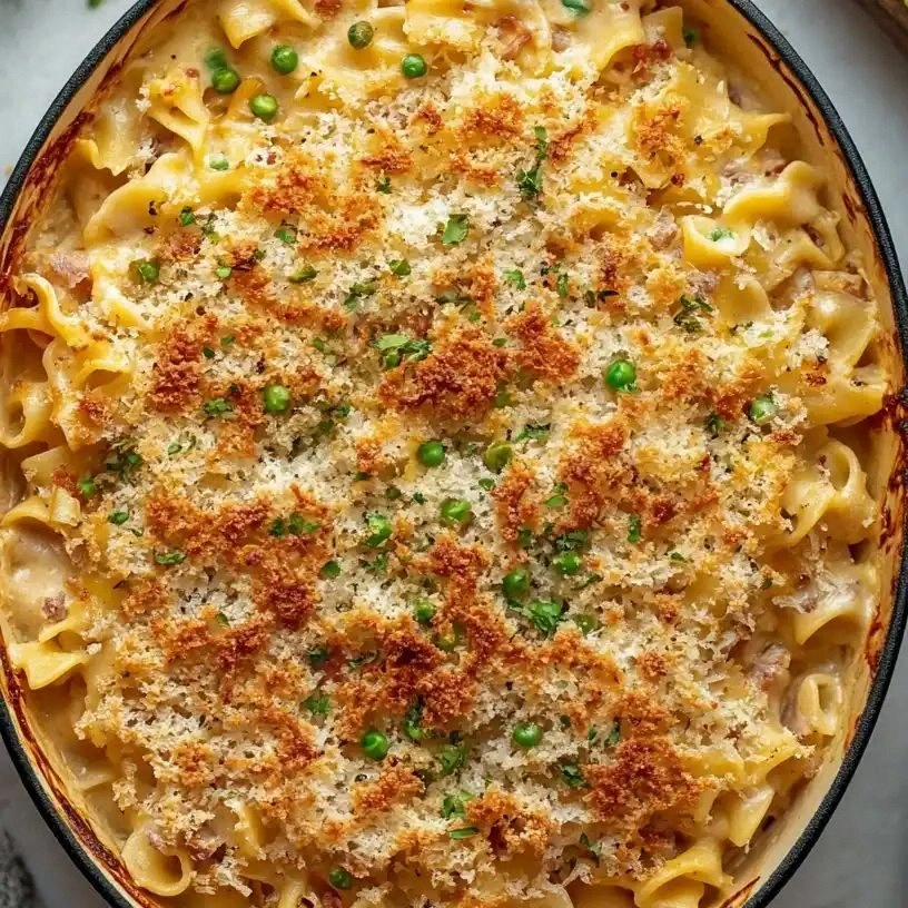 Egg noodles bring a comforting chew that pairs perfectly with the creamy sauce. Frozen peas add a pop of color and a sweet crunch that cuts through the richness. Shredded cheddar cheese melts into a gooey, golden layer that’s irresistible. Breadcrumbs create a crisp topping that snaps like thin ice when you bite into it.